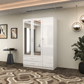 Glossique Modern 3-Doors Wardrobe with Mirror & 2 Bottom Drawers